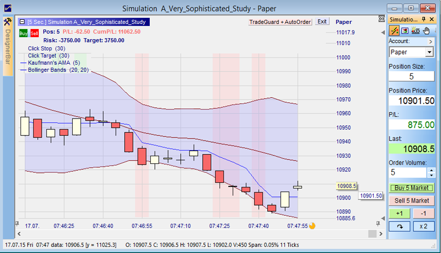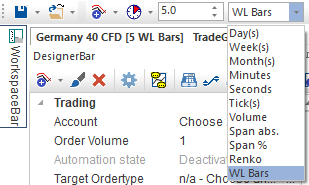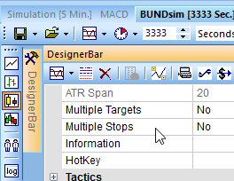 • Änderungen von Indikator-Parametern in der DesignerBar und im Chart, die über die Pfeiltasten oder das Mausrad vorgenommen werden, werden sofort im Chart übernommen