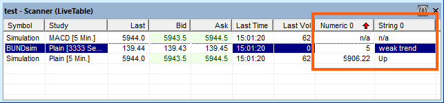 • Der in den Registern des Hauptfensters angezeigte Anaylsentitel ist etwas gekürzt.
