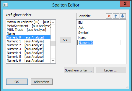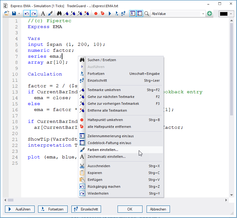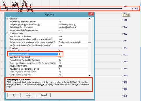 • Eine genaue Beschreibung finden Sie im "Charting und Trading-Handbuch", Abschnitt 6.16, das über das Hilfe-Menü aufrufbar ist.