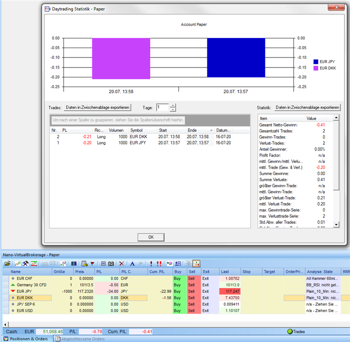 • Neue Funktionalität "Daytrade-Statistik". Diese ist über die Toolbar von Konto-Fenstern aufrufbar.