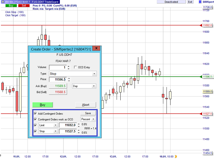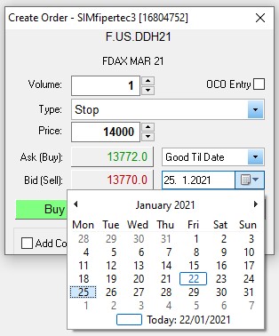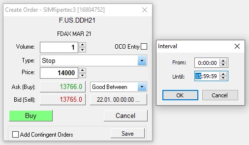 • Der Order-Erzeugen-Dialog zeigt in der Titelzeile das Konto an, über das gehandelt wird.