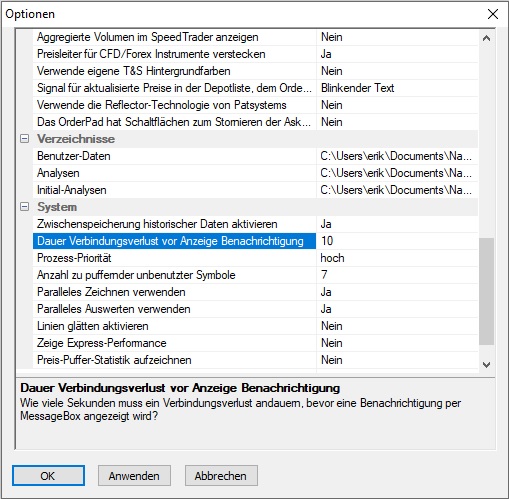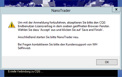 Aufgrund der Natur eines Verbindugsabbruchs kann es vorkommen, dass NanoTrader in diesem Fall keine Benachrichtigung senden kann.