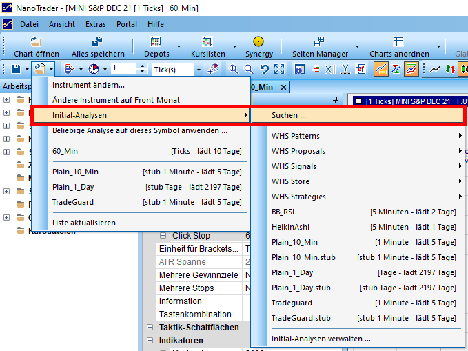 • Initial-Analysen können über ihren Namen gesucht werden. Der Eintrag "Suchen ..." ist in allen Menues enthalten, über die Initial-Analysen ausgewählt werden können.