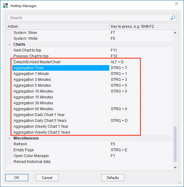 • Neue HotKey-Befehle für vordefinierte Aggregationen