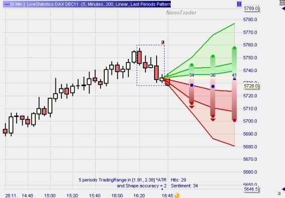 • Ein Kuchendiagramm am rechten Ende der Zeitachse der MasterCharts gibt an, zu welchem Anteil die aktuelle Periode bereits "abgelaufen" ist. Die Farben können im FarbenManager eingestellt werden. Die Kuchendiagramme berücksichtigen TwinCharts und PlayBacks.